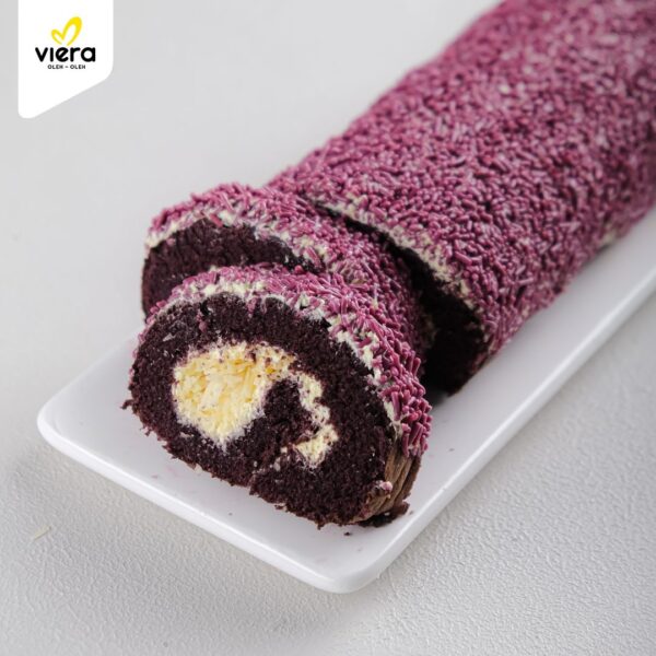 Bolu gulung lembut dengan rasa taro yang khas dan warna ungu menarik. Aroma taro yang lembut dengan rasa manis gurih. Tahan 3 hari di suhu ruang.